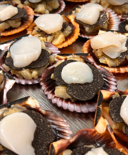 Alternative légère : Carpaccio de Saint‑Jacques aux agrumes, relevé d’un zeste de citron et d’une pointe de fleur de sel de Camargue.